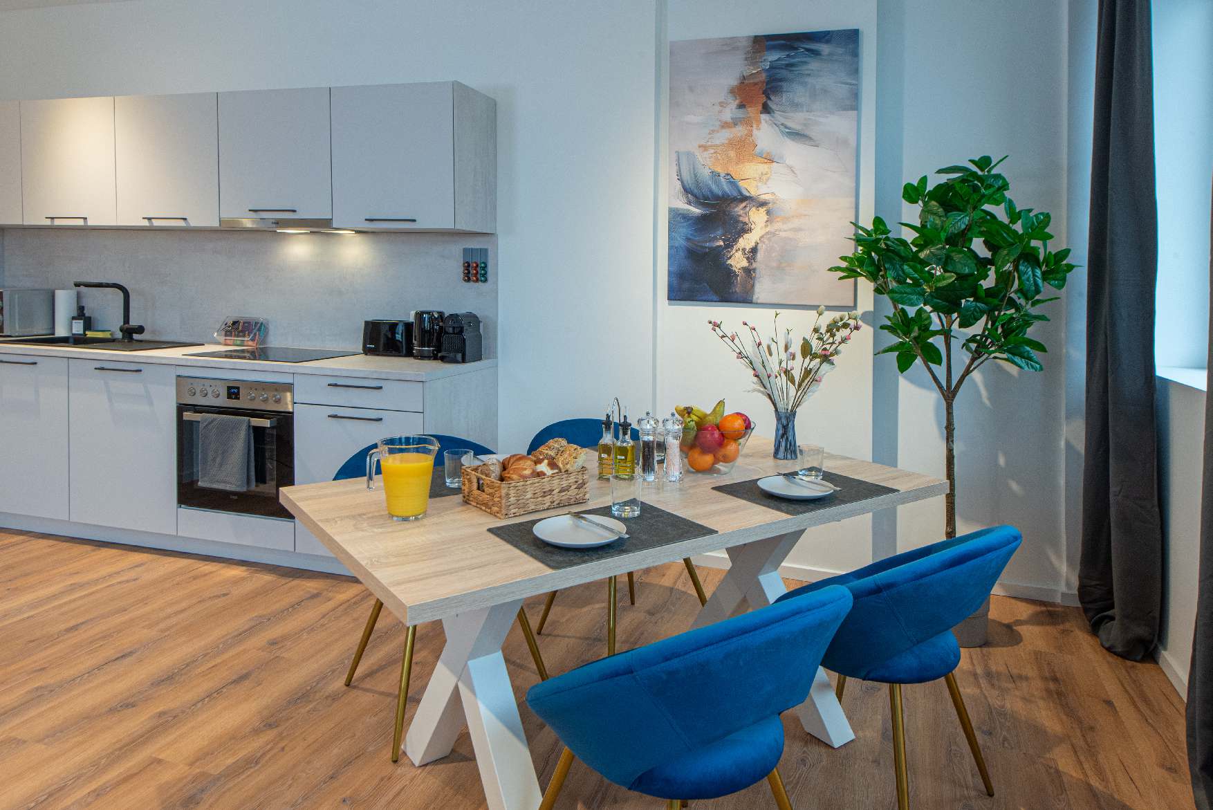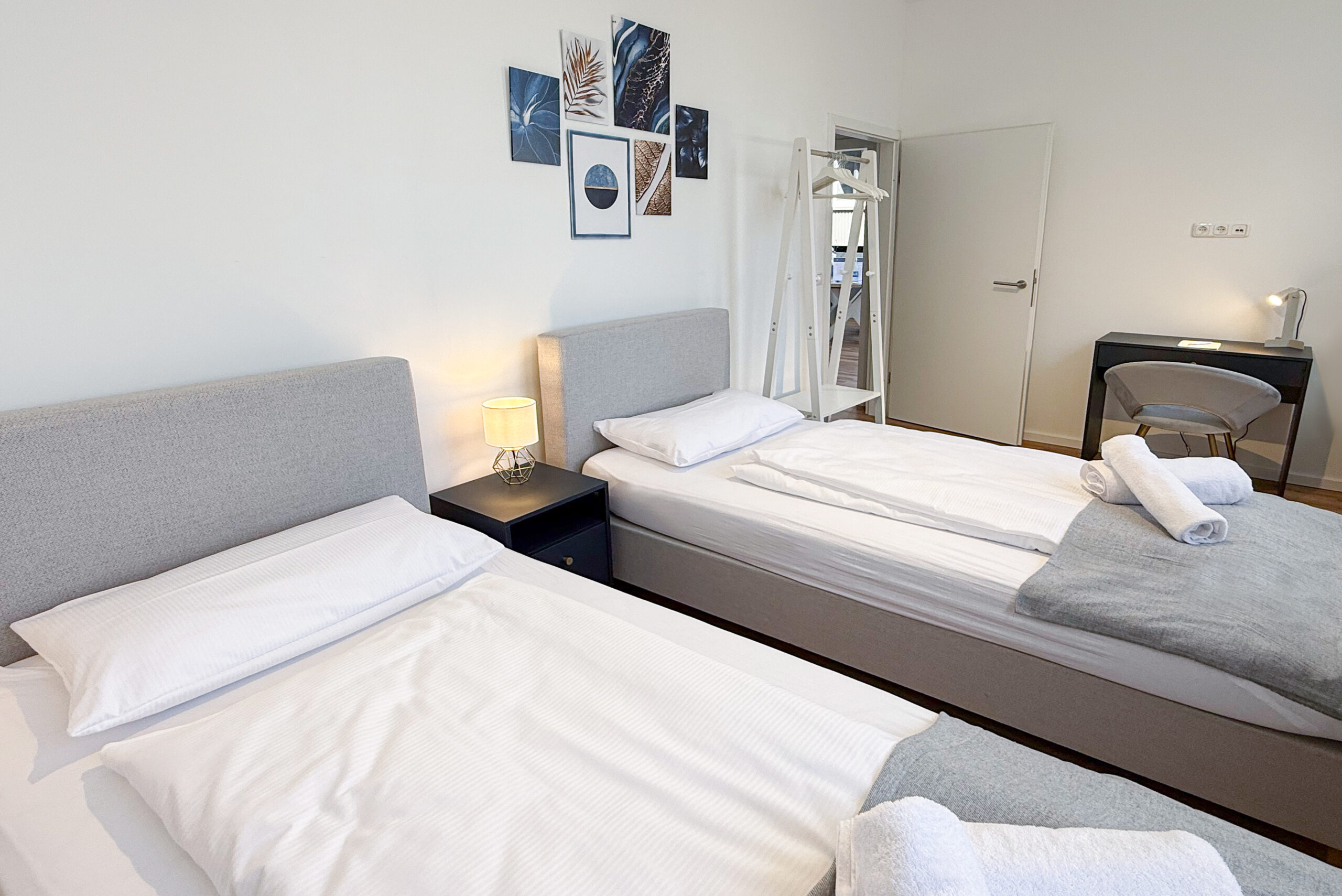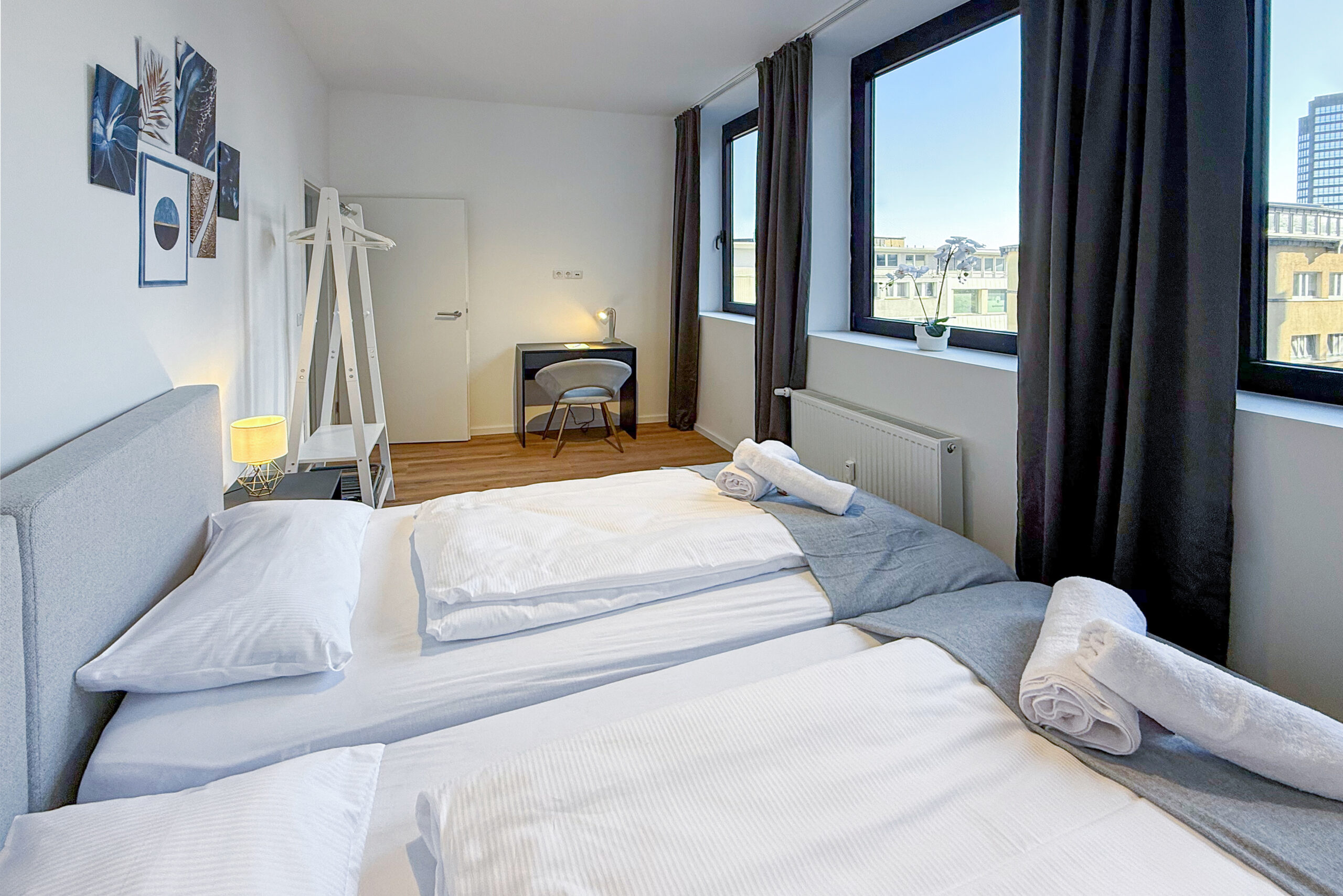 New and completely renovated apartment for up to four people near Kennedyplatz: one bedroom with two single box-spring beds that can be arranged as a king-size double bed or separated, one double sofa bed (1.40 m wide), a workspace, fully equipped kitchen including washer/dryer, bathroom with rain shower, free Netflix streaming, located on the 3rd floor (no lift), public parking in the immediate vicinity (e.g. Centralgarage Kennedyplatz for €18 per day), bakeries, cafés and restaurants nearby.